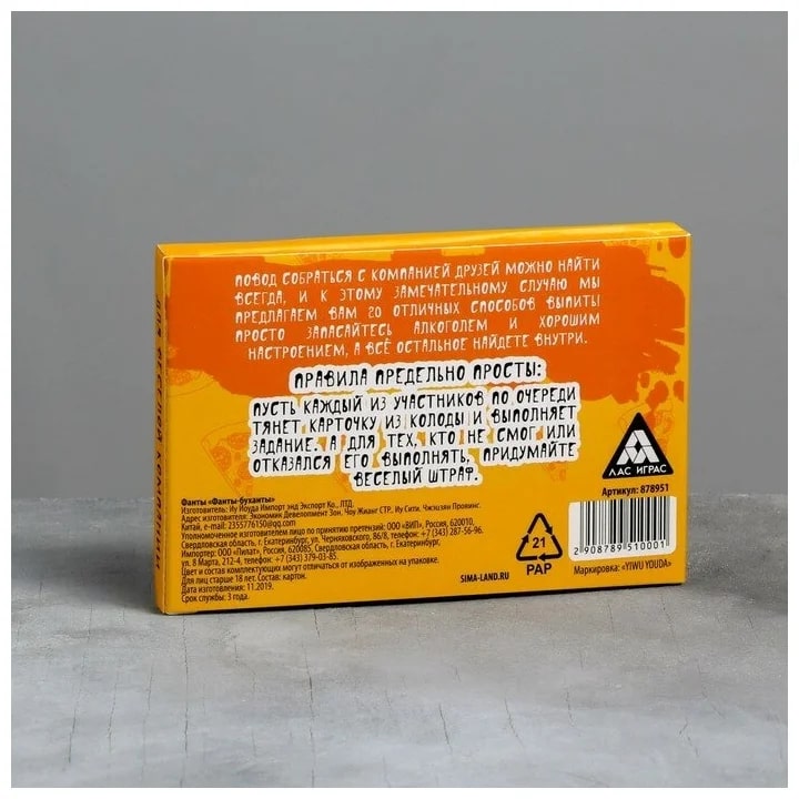 Купить игра для компании "фанты буханты" 20 карт от 100 руб. с доставкой до пункта выдачи в Алексеевке. Интернет магазин ДекаМаркет. Оплата при получении.